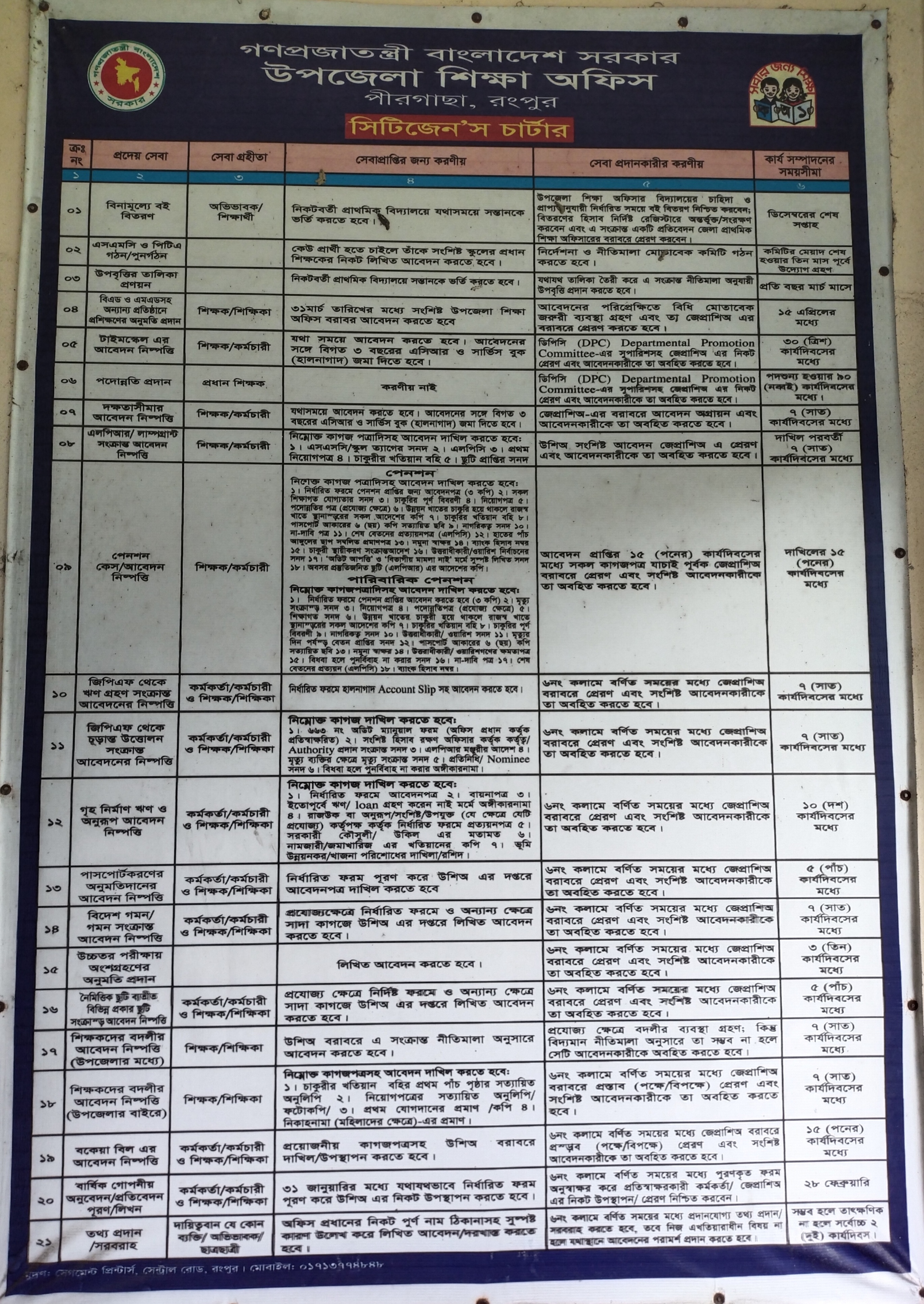উপজেলা শিক্ষা অফিস, পীরগাছা, রংপুর
